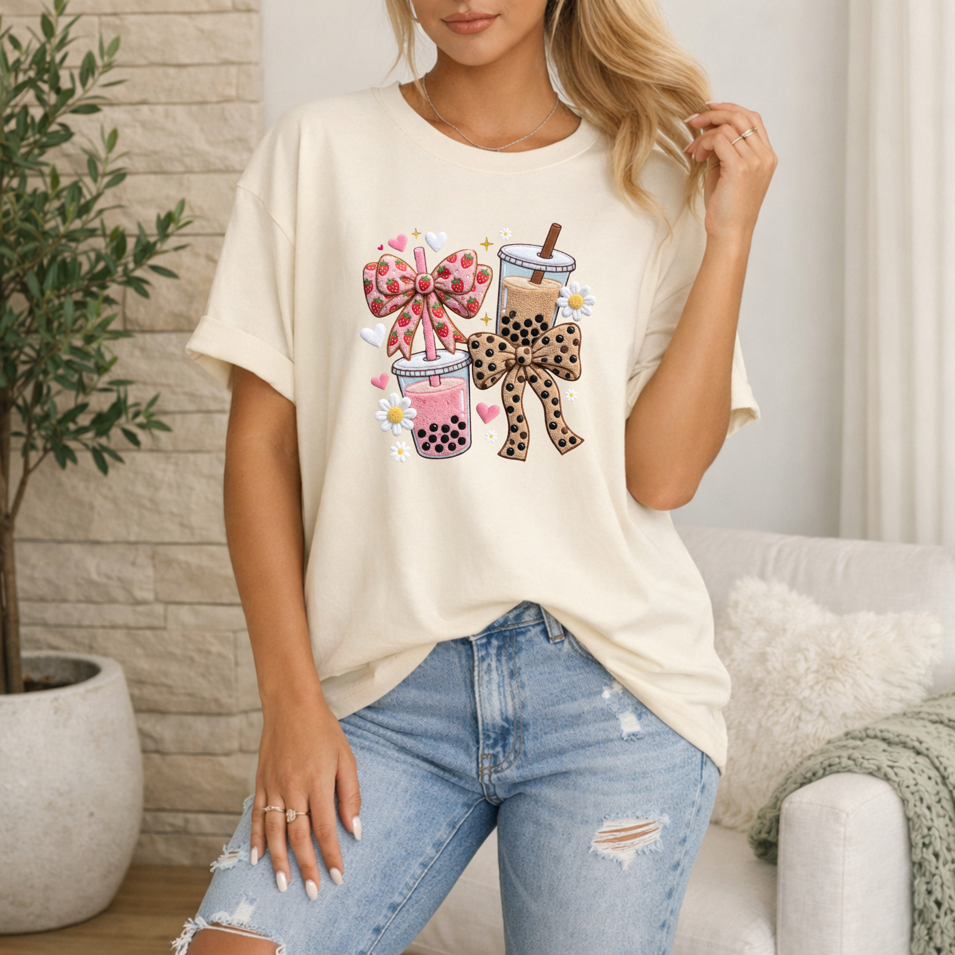 Coffee with bows and a little leopard print.