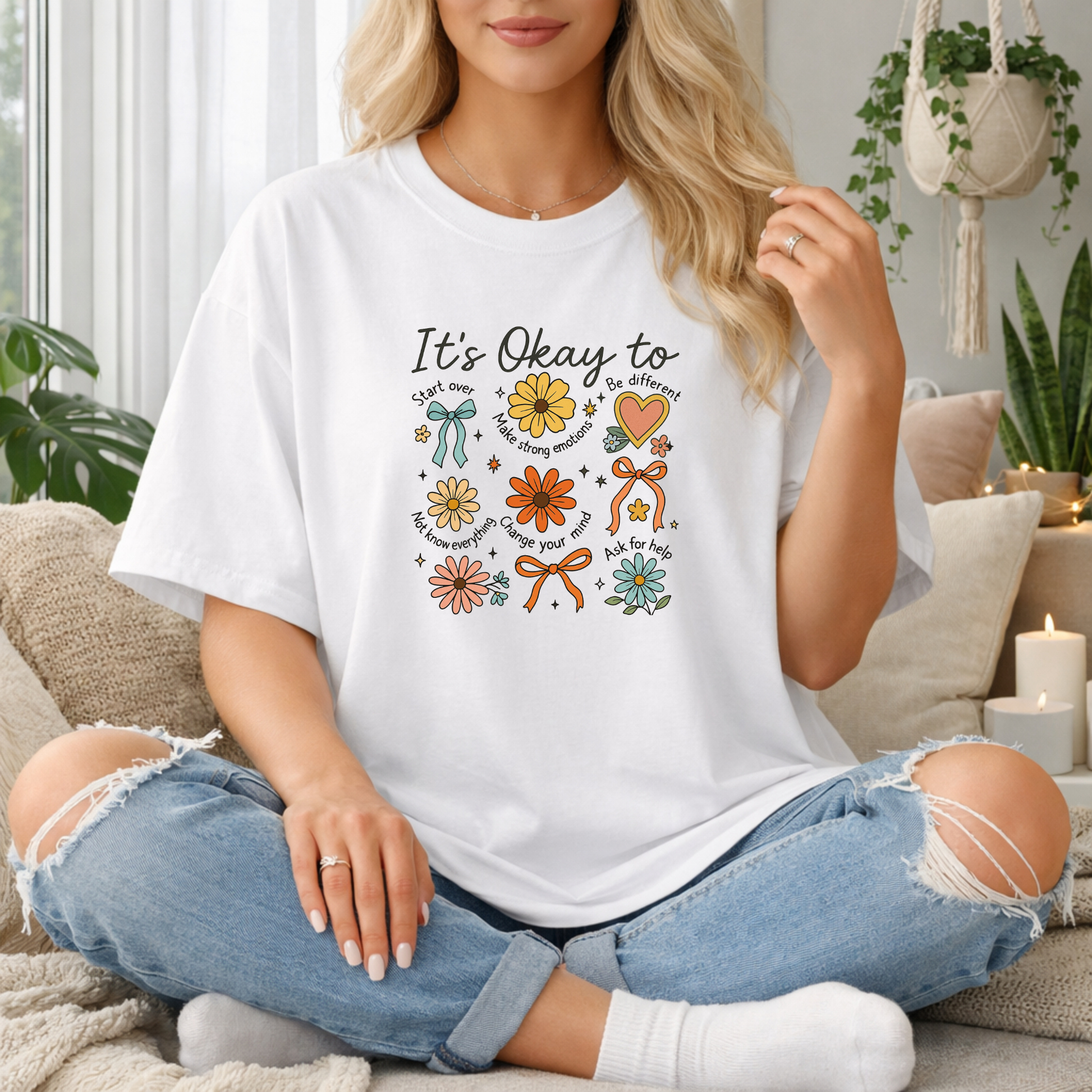 This detailed affirmation design blends soft florals with encouraging words. Meaningful without feeling heavy. Easy to style, easy to wear.